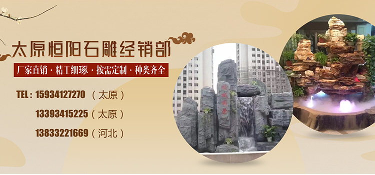 太原市晋源区曲阳恒阳石雕经销部是曲阳石雕在太原的直销处,厂家座落在中国“雕刻之乡”曲阳县城南3公里处.我厂拥有技术高超的雕刻技师、工艺美术大师;始终坚持“以人才为依托;以质量求生存;以服务赢信誉;以信誉求发展”的经营宗旨,多年来在各个地区制作了不少大型工程,产品得到了客户的一致好评!产品主要有:石雕栏杆、浮雕,石雕凉亭、花架,石雕狮子、大象,石雕牌坊,石雕墓碑,石桌、石凳,仿古石雕,假山、喷泉,古建凉亭、牌坊,不锈钢、铜雕,园林景观,人物雕塑,动物雕塑等。竭诚欢迎新老客户来图来样加工定做!电话:13833221669 15934127270 13393415225